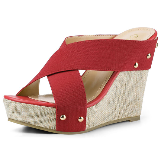 Women Open Toe Linen Platform Slide Wedge Sandals