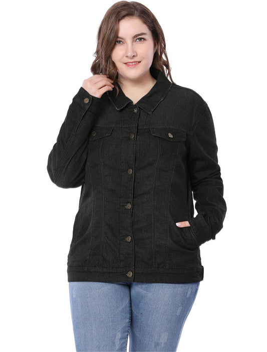 Women's Plus Size Jean Jacket Stitching Button Front Washed Denim Jacket