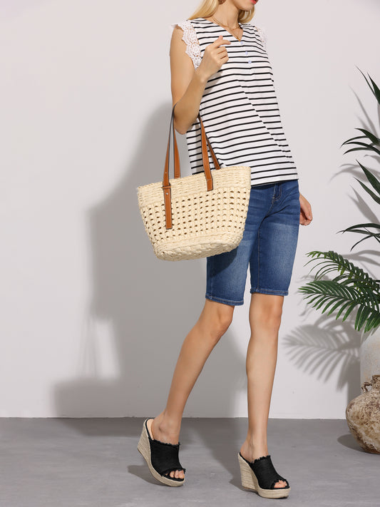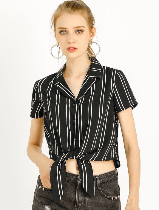 Women's Retro Striped Button Up Short Sleeve Tie Front Crop Shirt