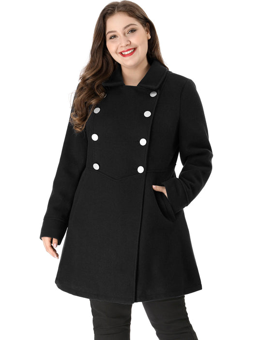 Women's Plus Size Coat A-Line Peter Pan Collar Double Breasted Fall Winter Peacoat