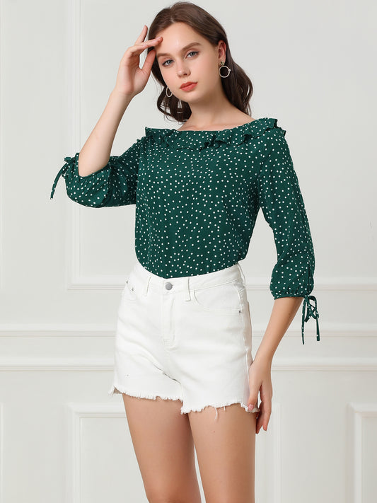 Women's Ruffled Collar Polka Dots 3/4 Sleeve Blouse