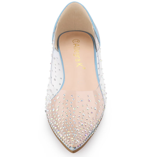 Women's Pointed Toe Clear Rhinestone Ballet Flats