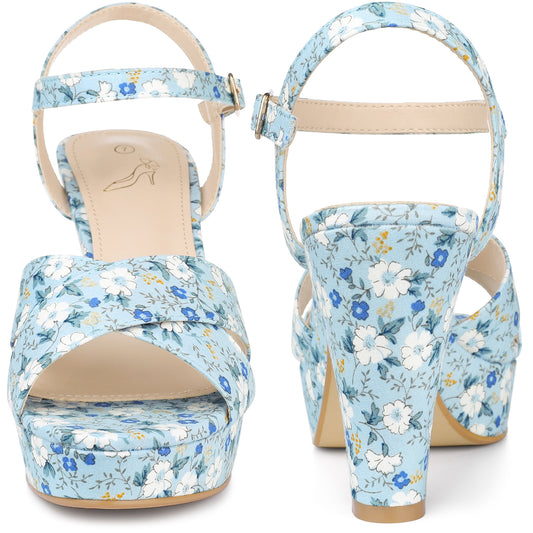 Women Floral Platform Chunky Heels Sandals