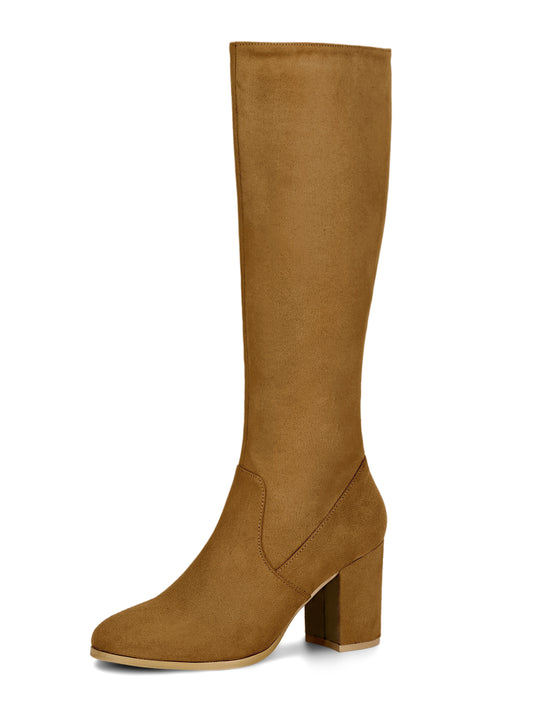 Women's Side Zipper Knee High Boots Chunky Heel Knee Boots, Deep Colors