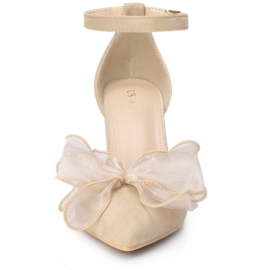 Women's Bow Heels Closed Toe Chunky Heel Pumps Sandals