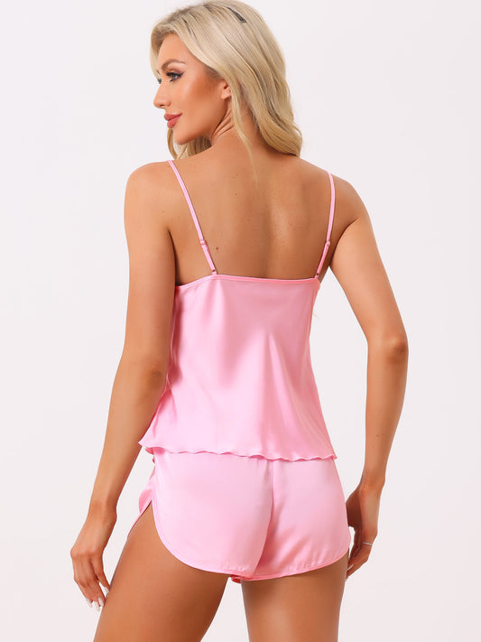 Women's Satin Pajamas Sets Cami Short Sets Sleepwear Sexy Silky PJ Set with Shorts