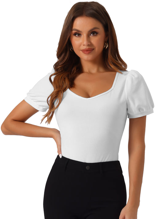 Women's Sweetheart Neck Top Short Sleeve Bodysuit