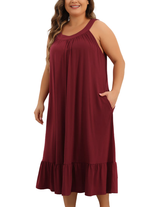 Women's Plus Size Nightgown Tank Sleeveless Sleepwear Wide Strap Chemise Pleated Nightdress with Pockets