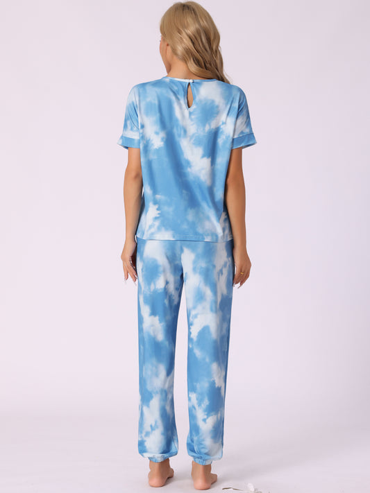 Women's Pajamas Set Sleepwear Tie Dye T-shirt with Pants Pajamas with Pocket Sweatsuit
