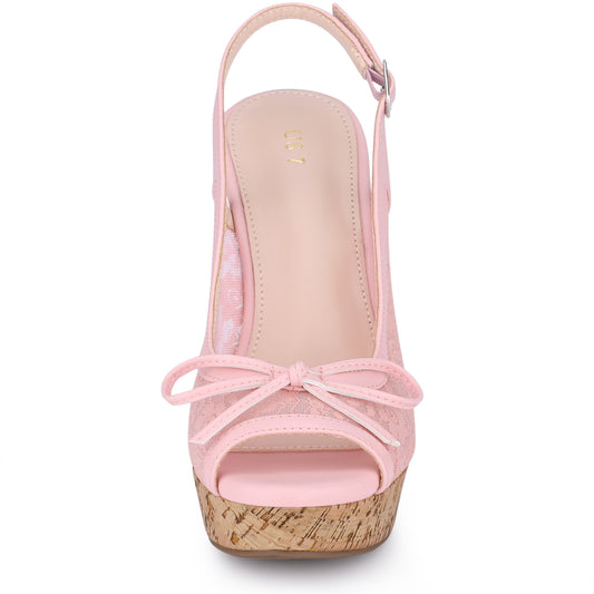 Women's Platform Heels Bow Lace Wedge Mustard Sandals