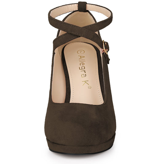 Women's Platform Cross Strap Stiletto Heels Mary Jane Pumps