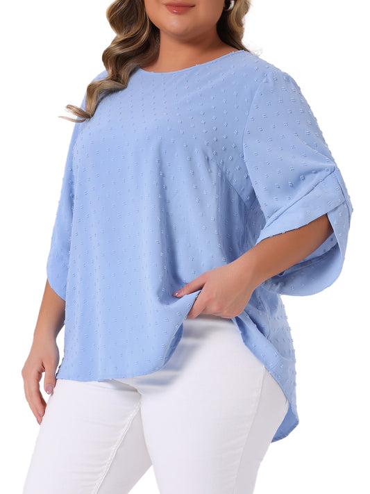 Women Plus Size Round Neck Petal Sleeve Swiss Dots Blouse Casual Summer Top