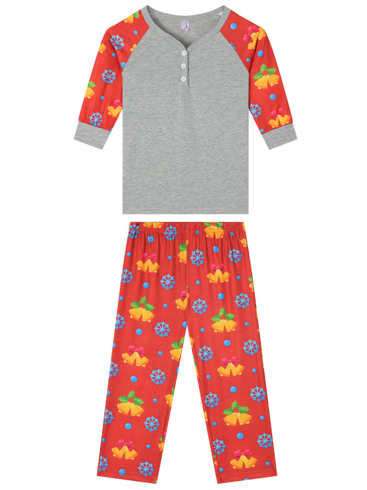 Kid's Christmas Long Sleeve Tops with Pants Loungewear Henry-Neck Holiday Festival Party Family Pajama Set