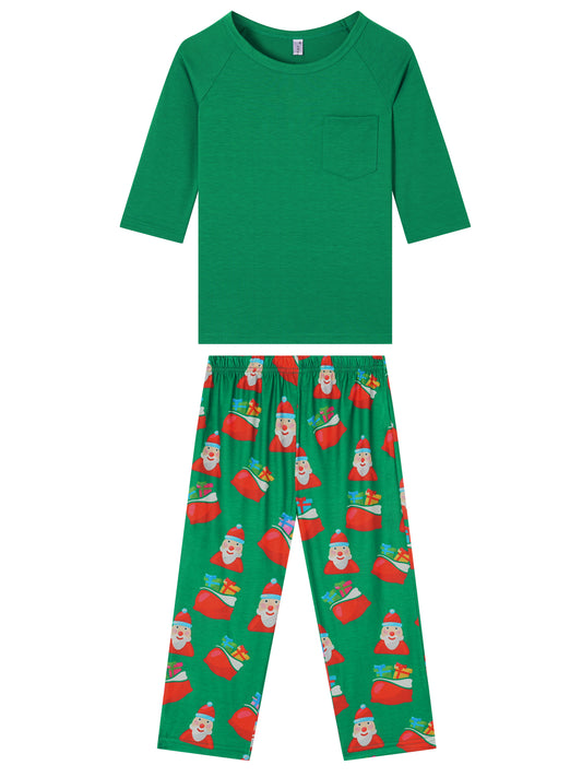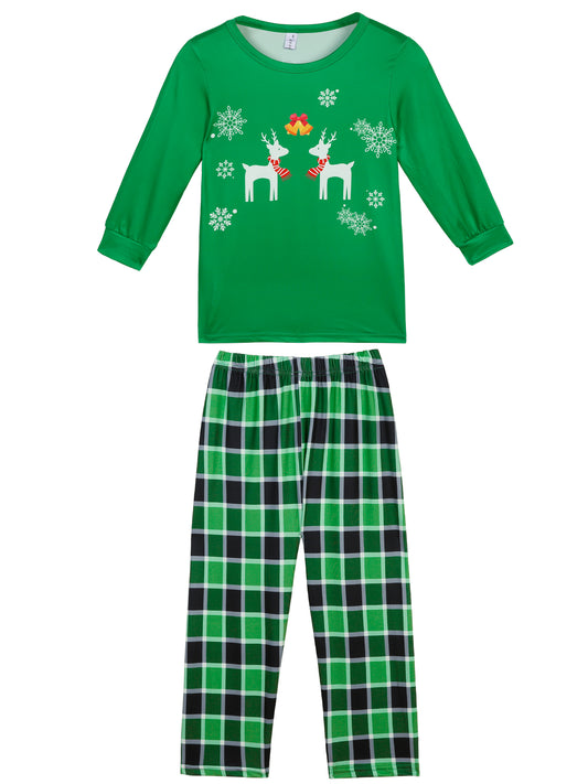 Kid's Christmas Nightwear Pajama Sets Long Sleeves Tops and Pants Plaid Lounge Sleepwear