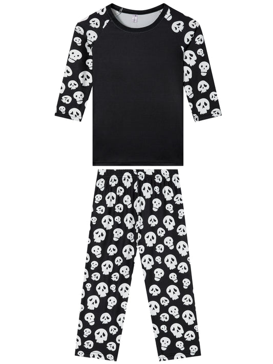 Child's Halloween Family Pajama Set Skull Print Long Pajama Top Matching Sleep Pants