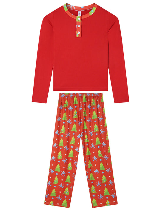 Kid's Christmas Long Sleeve Button Up Pajamas Tree Print Festival Party Sleepwear Family Pajamas Set