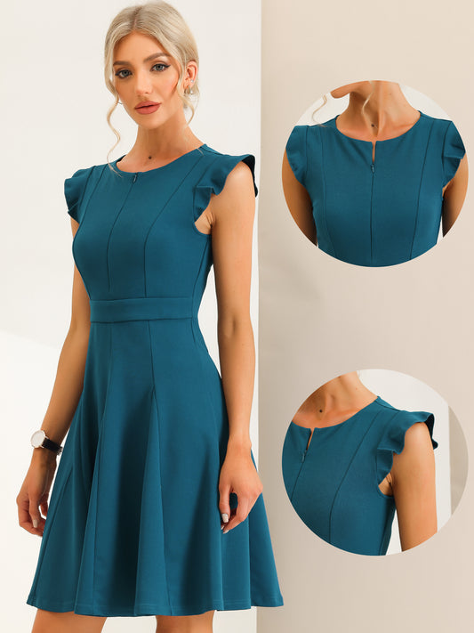 Women's Evening Dress Summer Ruffle Cap Sleeve Zip Front A-line Cocktail Dress