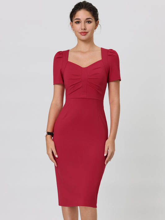 Women's Sheath Dress Sweetheart Neck Puff Short Sleeve Vintage Pencil Dress