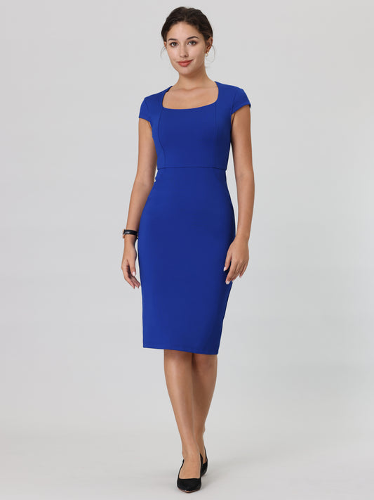 Women's Bodycon Pencil Dress Cap Sleeve Formal Work Knee Length Sheath Dresses