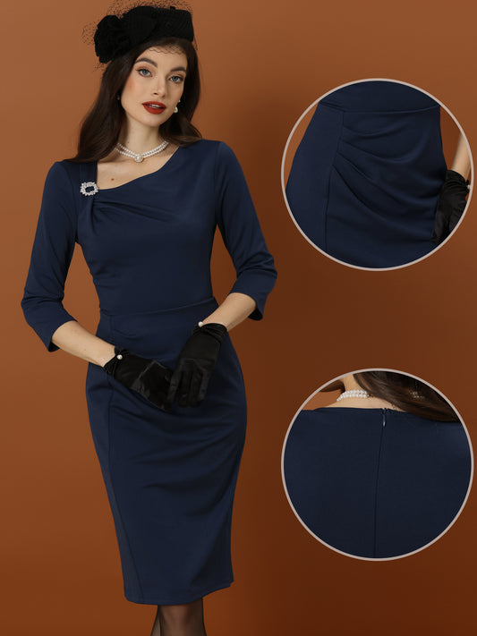Women's Retro Work Office Dresses Knee Length Sheath Pencil Dress