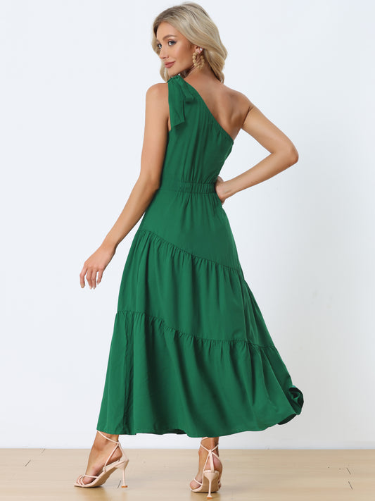 Women's One Shoulder Dress Ruched Sleeveless Elegant Long Dresses