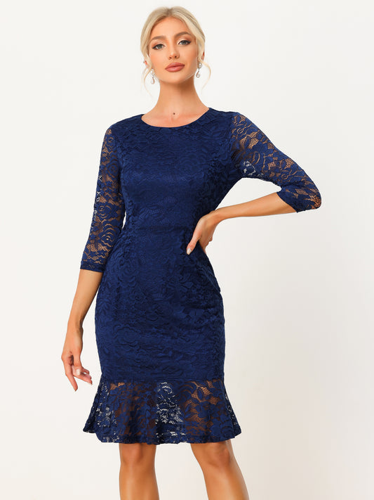 Women's Fishtail Dresses 3/4 Sleeve Elegant Evening Cocktail Lace Dress