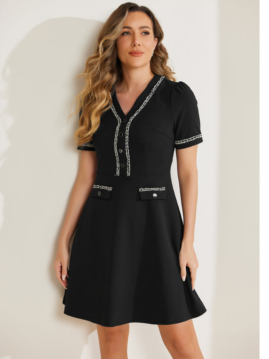 Women's Vintage Work Dress Contrast Color Fit and Flare Dresses