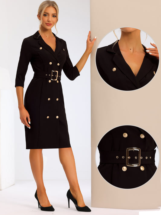 Women's Business Belted Work Blazer Suit Dress Double Breasted Dress