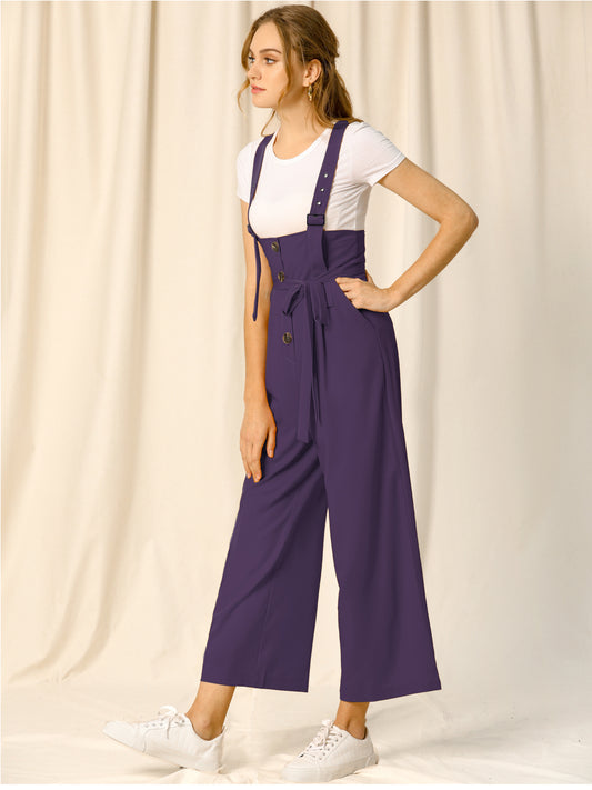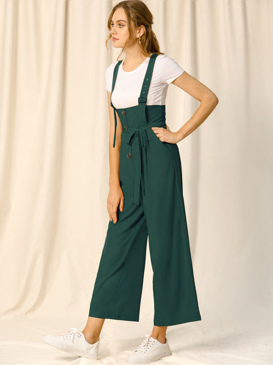 Women's Wide Leg Overalls Loose Fit Belted High Waist Suspenders Jumpsuits