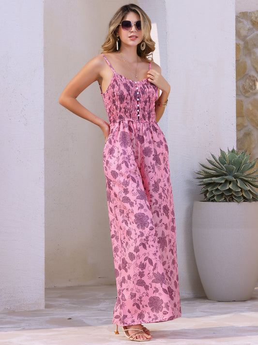 Women's Boho Jumpsuit Spaghetti Straps Sleeveless Wide Leg Pants Floral Romper