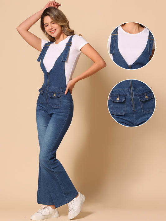 Women's Overalls Jeans Casual Adjustable Bib Bell Bottom Denim Pants Jumpsuits