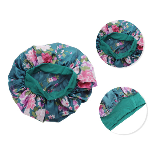 1 Pc High Elasticity Vintage Print Shower Cap for Bathroom Blackish Green