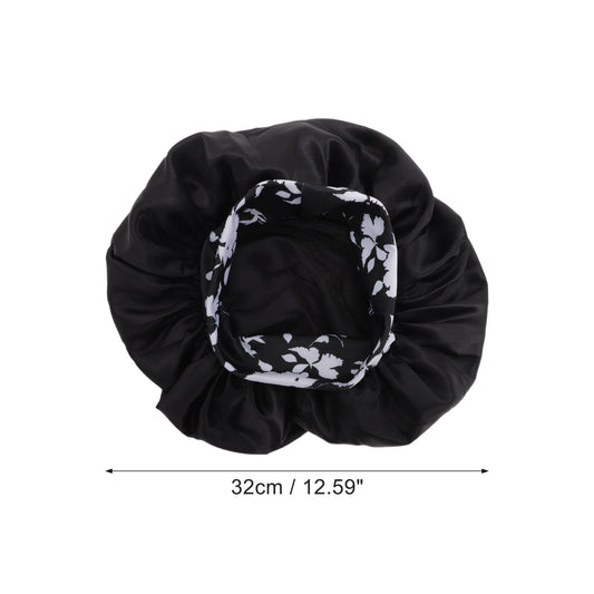 2 Pcs Women Durable Stretcht Shower Cap for Hotel Travel Black
