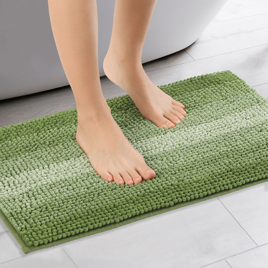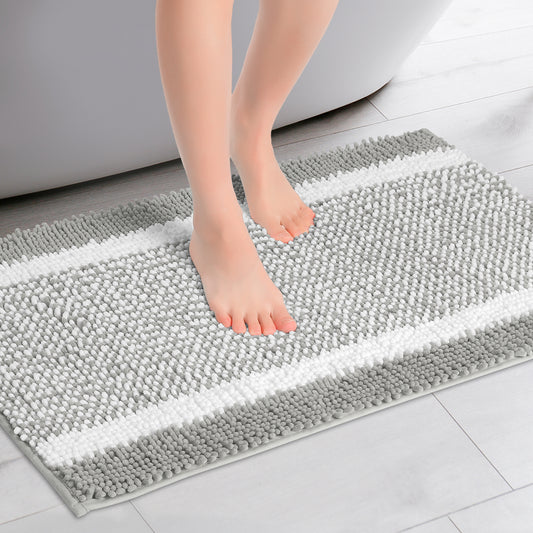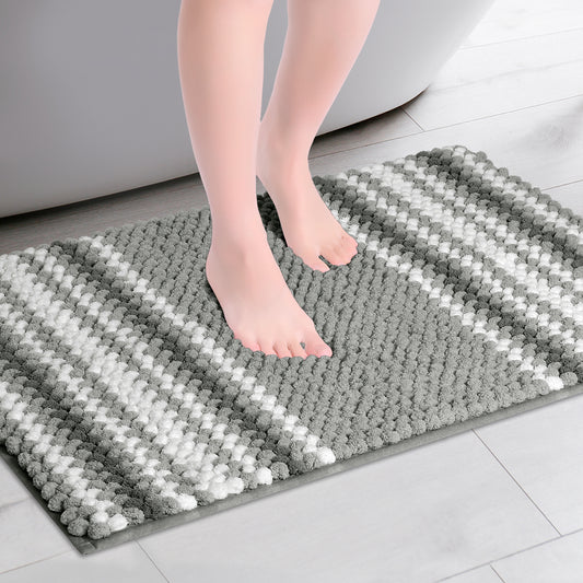Chenille Striped Bathroom Rug Mat, Non-Slip Soft Plush Shaggy Bath Carpet, Machine Washable