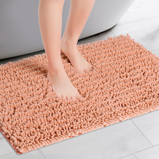 Chenille Bathroom Rugs Non-Slip Bath Mat, Plain Washable Soft Bath Mats