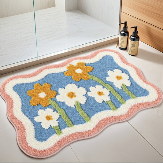 Bathroom Rugs, Soft Plush Non Slip Printing Quick Dry Reversible Microfiber Bath Mats