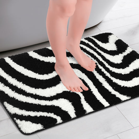 Fashion Wave Pattern Bathroom Rug Mat, Soft Absorbent Machine Wash Bath Mats