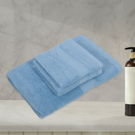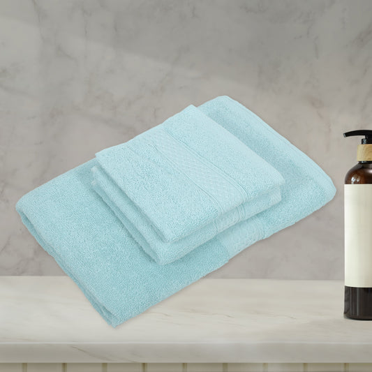 3 Pcs Cotton Bath Towel, Soft Absorbent Classic Towels Set, Cyan