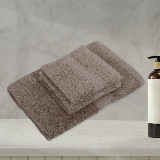 3 Pcs Cotton Bath Towel, Soft Absorbent Classic Towels Set, Coffee Color