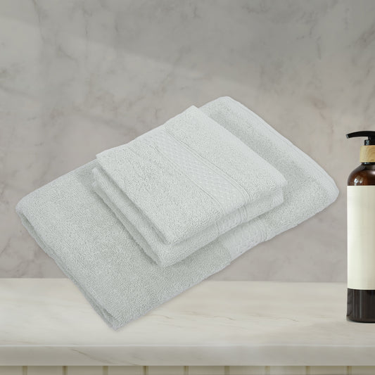 3 Pcs Cotton Bath Towel, Soft Absorbent Classic Towels Set, Light Gray