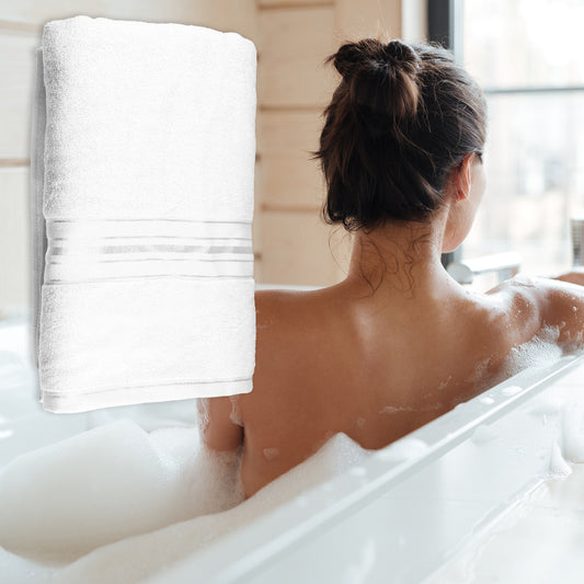 1 Pc Soft Absorbent Cotton Bath Towel, White, 55.12"x27.56"