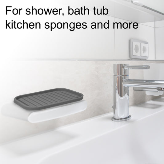 Silicone Soap Dish, Keep Soap Dry for Home Bathroom Kitchen, 23x9cm Dark Gray