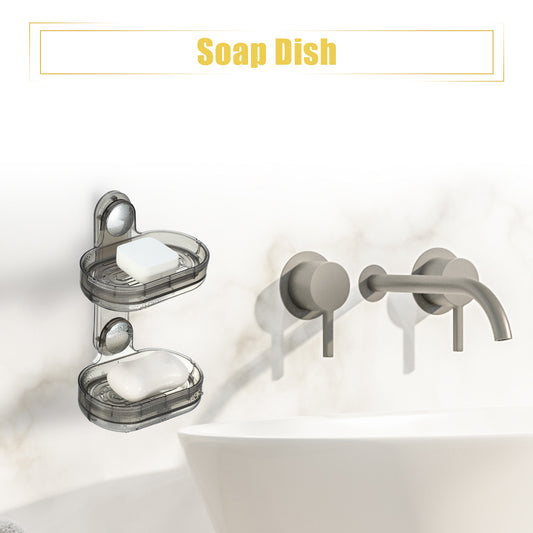 Double Layer Soap Holder Wall Mounted Soap Dish for Bathroom Kitchen Black