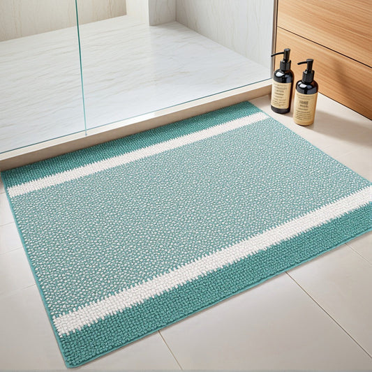 Chenille Striped Bathroom Rug Mat, Non-Slip Soft Plush Shaggy Bath Carpet, Machine Washable