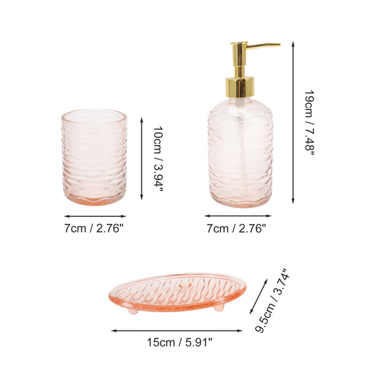 4 Pcs Set Reusable Waves Bathroom Accessories Kit Pink