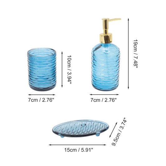 4 Pcs Set Reusable Waves Bathroom Accessories Kit Blue