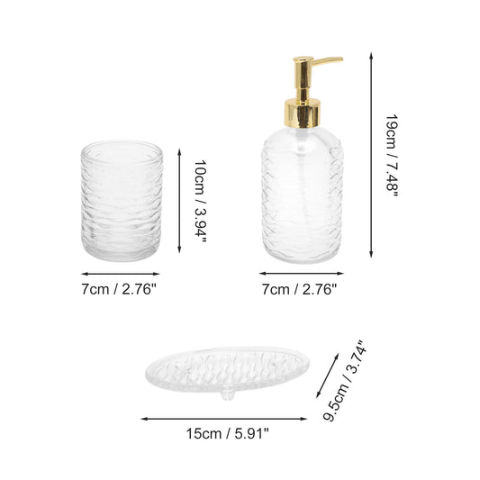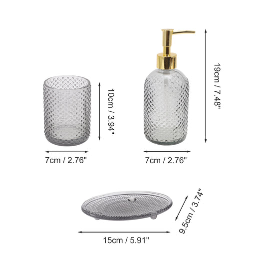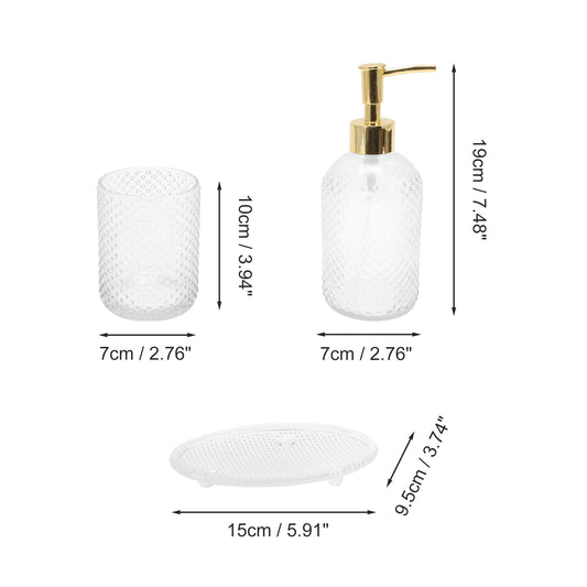 3 Pcs Set of Simple Reusable Dots Bathroom Accessories Kit Clear