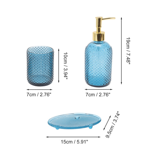 3 Pcs Set of Simple Reusable Dots Bathroom Accessories Kit Blue