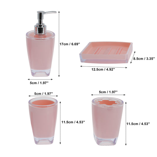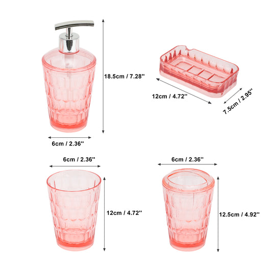 4 Pcs Set Transparent Bathroom Accessories Kit for Home Pink