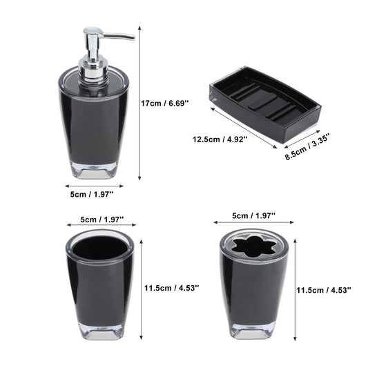 4 Pcs Set Reusable Bathroom Accessories Kit for Home Black